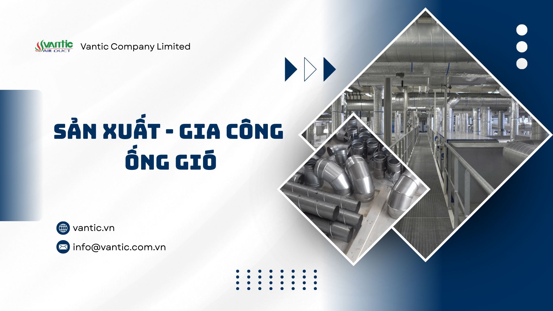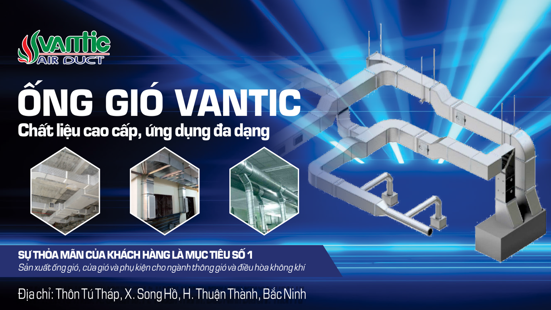 - Ống gió tròn, vuông và phụ kiện (tôn mạ kẽm, nhôm, inox 304) với dây chuyền hiện đại, ứng dụng rộng rãi trong thông gió, điều hòa, phòng sạch, bệnh viện, nhà máy dược phẩm, điện tử…